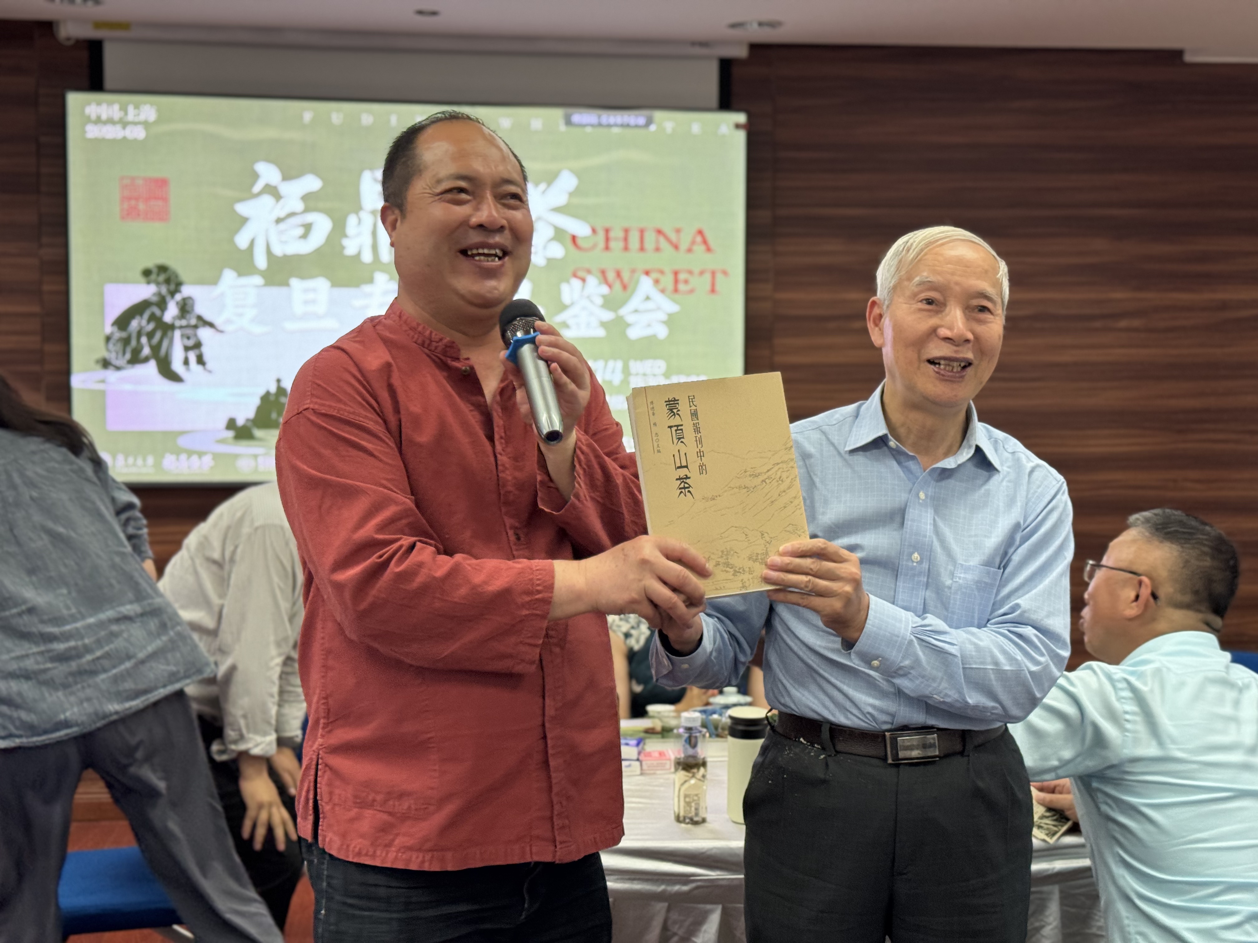 福鼎市茶产业发展领导小组办公室副主任、白茶历史专家杨应杰详细介绍了福鼎白茶的独特魅力及其深厚的文化底蕴。历史系傅德华教授向杨主任赠送了他主编的《民国报刊中的蒙顶山茶》一书,将活动推向了高潮。