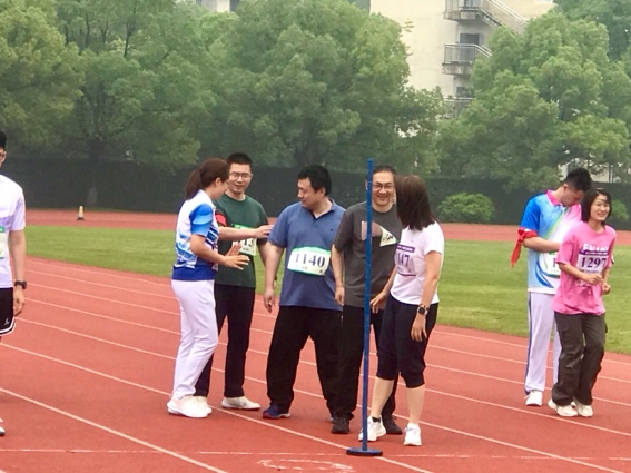 在随后进行的教职工30米穿梭接力比赛中,杨成斌、吴剑鸣、翁经纬、王利、冯玮、王成晟、李伟红、张宁、王佳琦、孙丽梅等十位老师组成的队伍强势登场。由于场地湿滑,大家制定了以“稳”为主的战术策略,减小步伐、增大步频。在比赛中,老师们默契配合,每一次交接棒都流畅自然。尽管有所保留,但仍以59.585秒的成绩获得团体第十名,这无疑是一场令人满意的战斗。