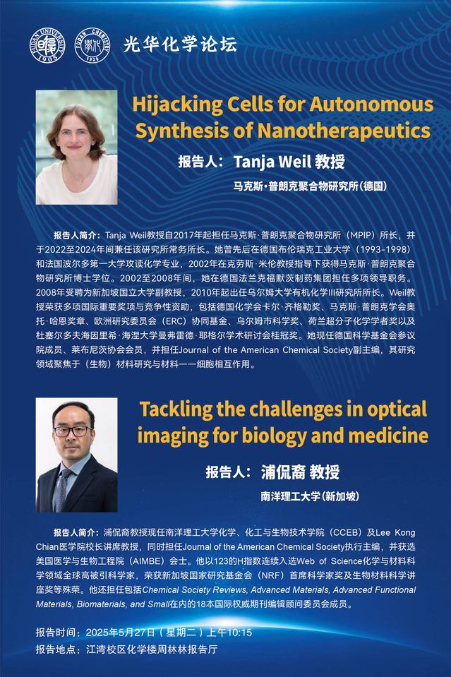 (1)Hijacking Cells for Autonomous Synthesis of Nanotherapeutics/(2)Tackling the challenges in optical imaging for biology and medicine