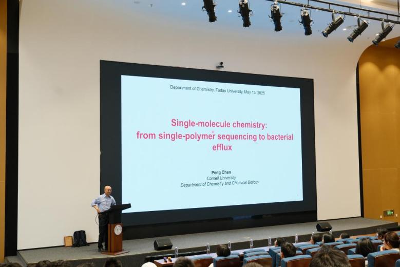 5月13日,光华化学论坛第六十八讲顺利举行。康奈尔大学Peter J.W. Debye化学讲席教授陈鹏作“单分子化学:从单聚合物测序到细菌外排”主题报告。陈鹏教授以“合成聚合物单分子测序”和“活菌金属外排动态成像”两大前沿方向,系统介绍了其团队在单分子化学领域的突破性进展,分享了单纳米粒子催化、光电催化等领域的跨学科研究成果,特别强调了单分子操控技术在生物无机体系研究中的独特优势。他结合自身从南京大学到康奈尔大学的学术历程,鼓励青年学者“用单分子视角重新发现化学的复杂性”,其深入浅出的解答和富有哲理的科研见解令在场师生受益匪浅。
