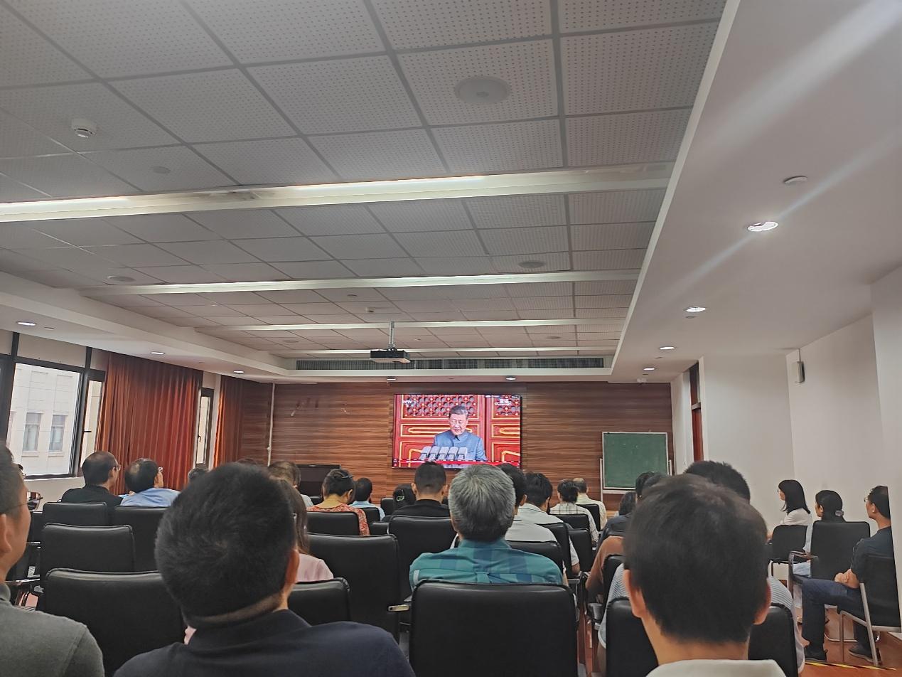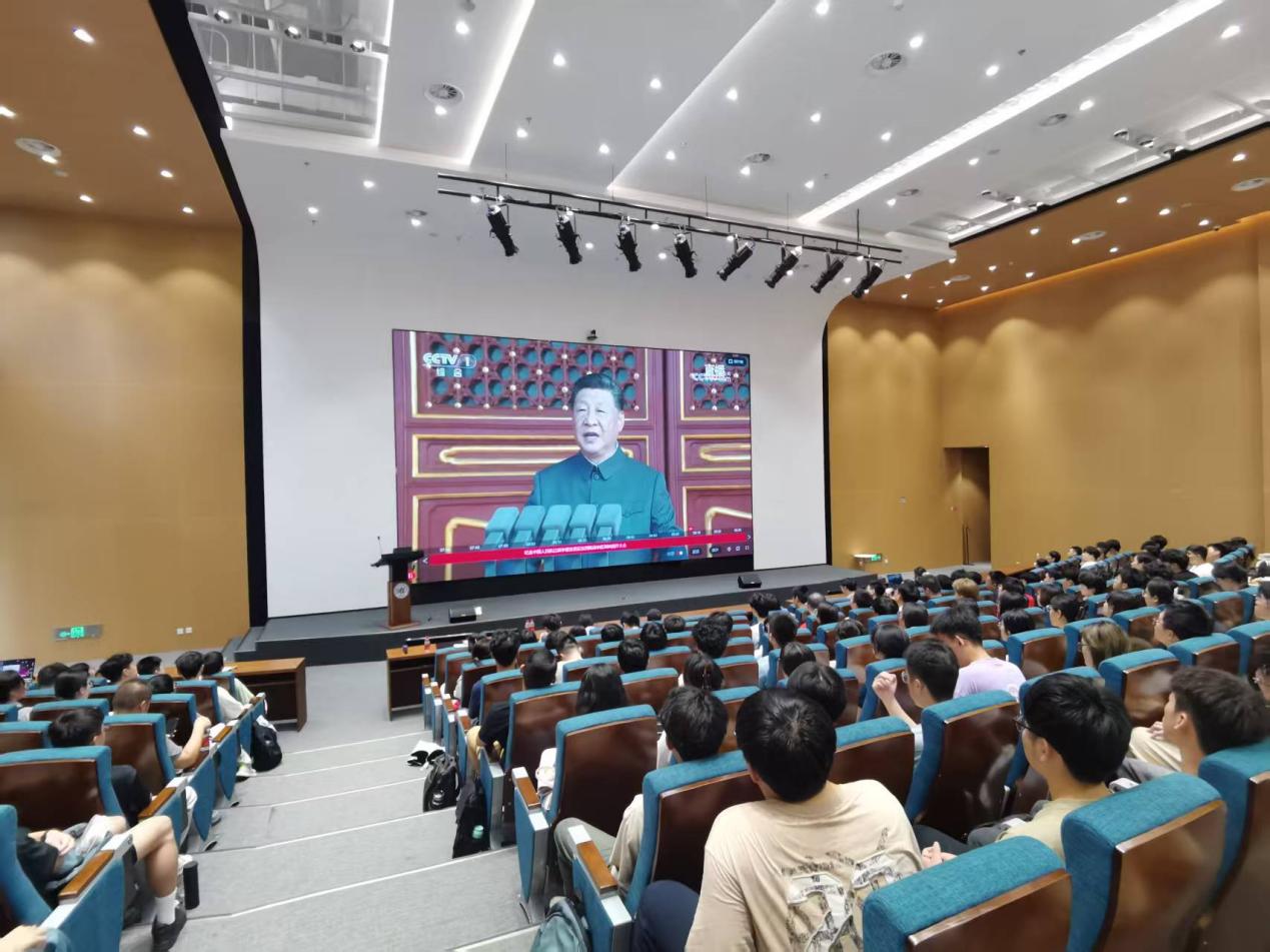 9月3日9时,纪念中国人民抗日战争暨世界反法西斯战争胜利80周年大会在北京天安门广场隆重举行。中共中央总书记、国家主席、中央军委主席习近平发表重要讲话并检阅部队。为引导师生深刻铭记历史、传承伟大抗战精神,丝袜av 党委组织全系教师和学生代表,分别在江湾校区化学楼A3030会议室与江湾校区化学楼周林林报告厅两个会场,集中收看大会现场直播,近300名师生共同参与此次观看活动。