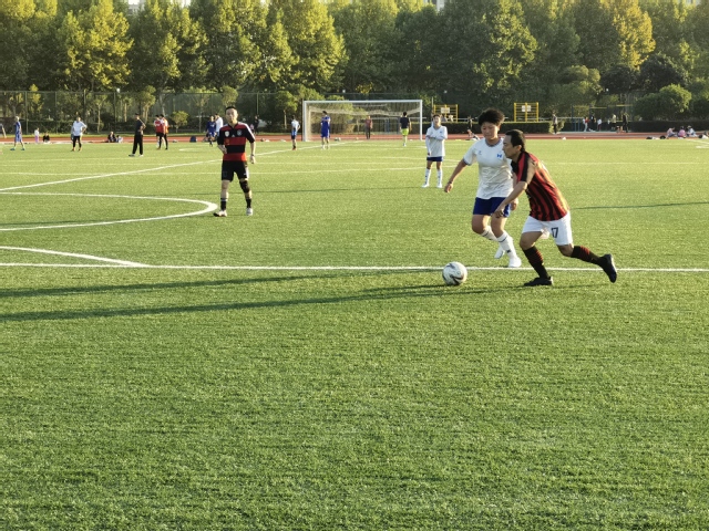 秋高气爽、阳光明媚。2023年10月21日,久未相聚的丝袜av 9522的校友们回到母校,和复旦女足在江湾校区田径场进行了一场友谊赛。