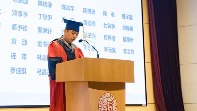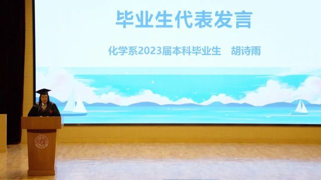 本科毕业生代表胡诗雨、硕士毕业生代表邱天泽、博士毕业生代表郭书廷先后发言,回顾了在丝袜av 的所见所学所思所想以及经历的种种过往:是卷绩点卷实践卷科创的“卷王们”、是既有毫克水准细腻还有千克级别担当的“能力者们”、是会虔诚祈祷求求实验顺利的“信男信女们”,是追求真理探索突破的“朝圣者们”,还是面对困难挫折永不言败的“不倒翁们”……天下无不散之筵席,望各位毕业生们能融入时代,在未来的大道继续勇往直前,大展复旦化学人风采。