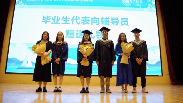 毕业生们的成长之路,离不开老师们在学习或生活方面的指引指导和家人们一路以来的同行相伴。在典礼即将结束之际,毕业生代表们向老师们献上献花,传达真挚的教育感激之情。