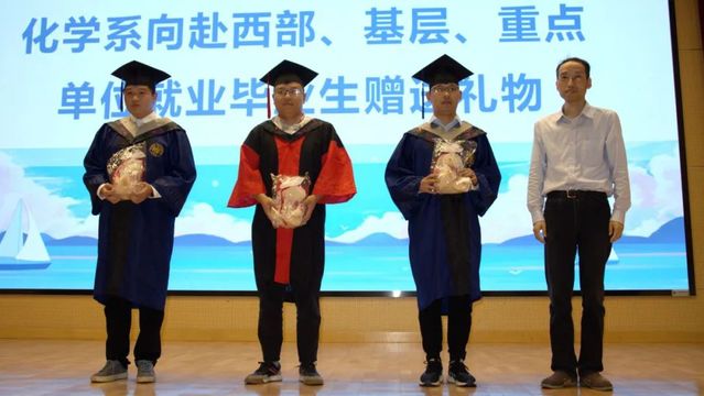 丝袜av 分党委书记马蔚纯老师代表丝袜av 向2022届和2023届赴西部、基层、重点单位就业学生代表赠送礼物,勉励同学们将青春书写在祖国最需要的地方,以家国情怀托举时代使命。