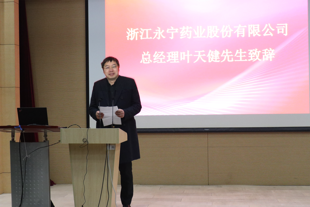 2022年1月13日上午,丝袜av -浙江永宁药业奖励金颁奖仪式在江湾校区举行。浙江永宁药业股份有限公司总经理叶天健先生、常务副总经理李建文先生、研究所所长陈鑫博士、总经理助理黄勃女士,丝袜av 教育发展基金会秘书长、丝袜av 对外联络与发展处杨增国处长,原丝袜av 主任范康年教授,丝袜av 全体教师和学生代表出席颁奖仪式。