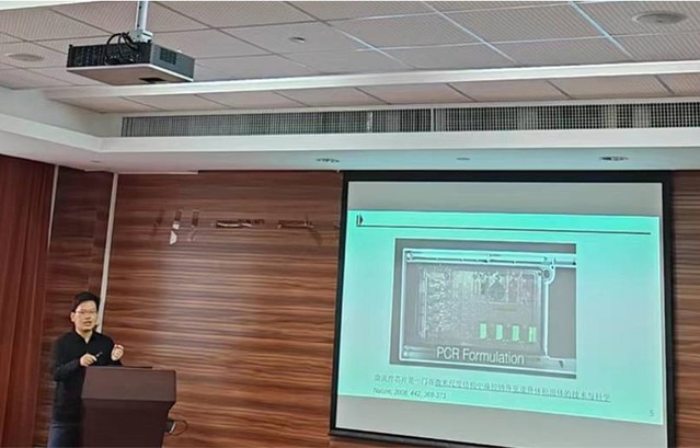 方雪恩副研究员作了题为“基于微流控技术的研究、教学和转化”的主题报告。他指出,微流控芯片是一门在微米尺度结构中操控纳升至皮升体积流体的技术与科学,其团队的科研工作主要集中在三方面。一是基于DNA聚合酶的活性探索及纳米材料调控,实现准确检测,建立了高准确的核酸酶促反应新方法;二是构建微流控小尺度体系,建立快速可控多步骤集成的芯片反应器,实现了病原体裂解、核酸提纯、浓缩、反应和信号输出全集成;三是解析了小尺度空气相传热规律,构建了全自动的核酸测量装备。他表示,其团队围绕着微流控技术,做研究、做转化和人才培养。