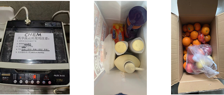 除了志愿者们的服务工作,在校的每位师生都服从抗疫大局,自觉遵守校园防疫规定,全力配合落实各项应急处置措施,做到了“人人响应、人人参与、人人自律”。聚沙成塔,大家都在用自己的力量和方式,共同筑起丝袜av 防疫的城墙。疫情突发,部分来不及返回宿舍或居住地而被封闭在化学楼内的师生面临着生活物资缺乏的问题。4月5日,在丝袜av 的号召下,园区同学和校外老师齐心援助,踊跃捐赠个人楼内物品以保证化学楼内师生生活,为疫情防控贡献自己的力量。