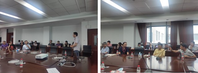 与会老师对王旭东研究员的讲述内容提出了各自的意见和看法。有的老师对氧气传感器的研究背景比较感兴趣,希望在背景介绍和研究现状方面有更详细的说明和相应的对比。有相近专业的老师,就如何侧重于基于快速测量荧光寿命系统研究,并做进一步的衍生来突出研究特色方面,提出了建设性意见。有的老师就专业用词的使用、报告内容中各部分内容应如何侧重和聚焦等方面提出了中肯的建议。还有的老师对于如何加强课题组建设表达了个人看法。讨论气氛十分热烈。