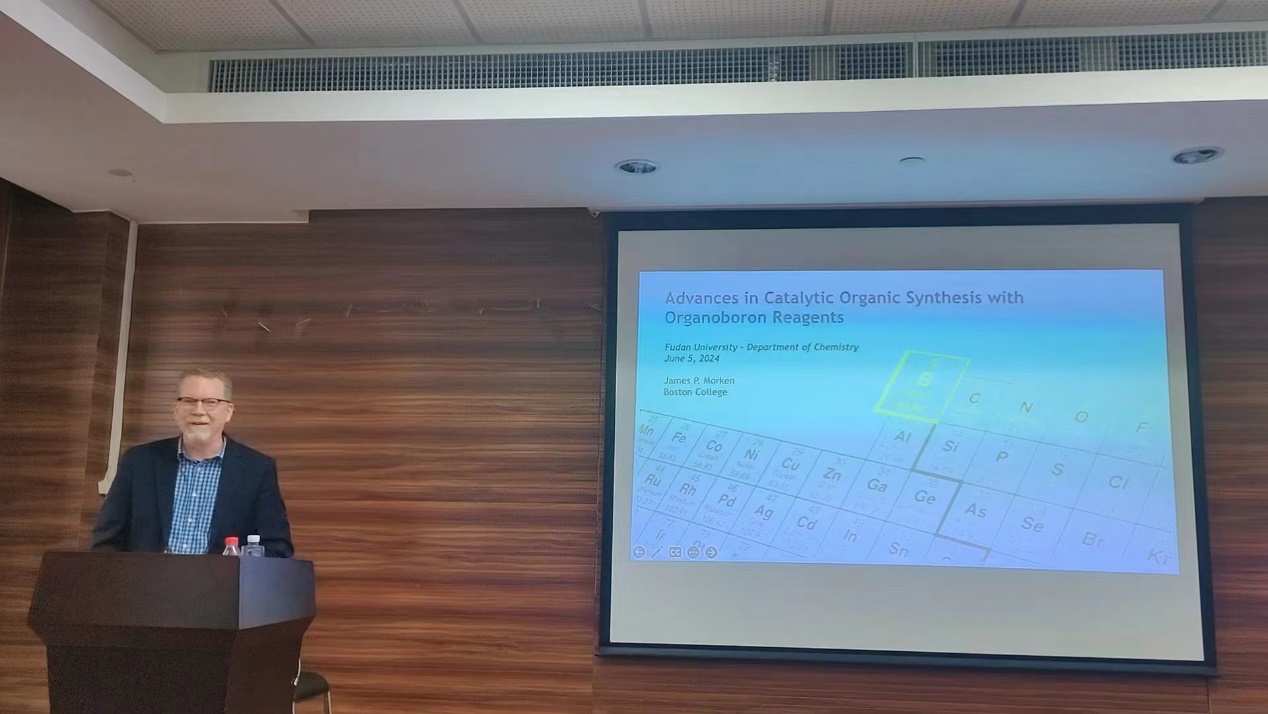 6月5日下午,丝袜av “光华化学论坛”在江湾校区化学楼A3030室顺利举行。波士顿大学James P. Morken教授受邀作了题为“Advances in Catalytic Organic Synthesis with Organoboron Reagents”的学术报告。张俊良教授主持本次报告会,并为Morken教授颁发了证书。