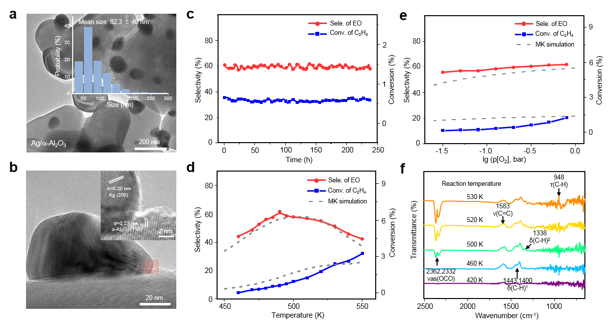 该成果报道了基于机器学习原子模拟探寻银催化乙烯环氧化活性位点的最新研究成果,发现环氧乙烷产物选择性与反应条件下Ag(100)原位生长的含有五配位次表层氧的新表面相有关的理论和实验证据。