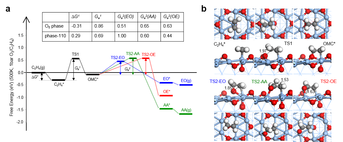 图3:反应条件下各个共存相的乙烯环氧化反应机理计算。