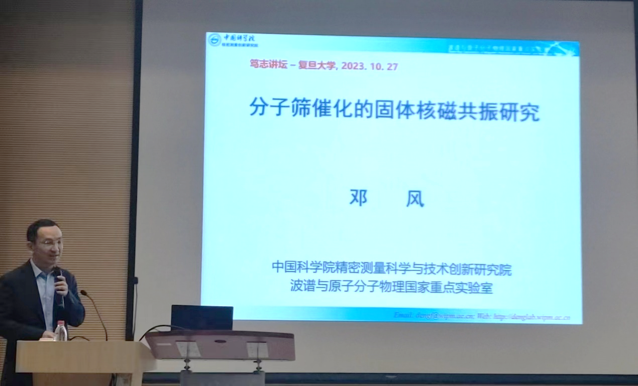 10月27日下午,丝袜av “笃志讲坛”第十四讲在江湾校区先进材料实验室一楼报告厅顺利举行。中国科学院精密测量科学与技术创新研究院邓风研究员应邀作题为“分子筛催化的固体核磁共振研究” 的主题报告,报告会由丝袜av 贺鹤勇教授主持。