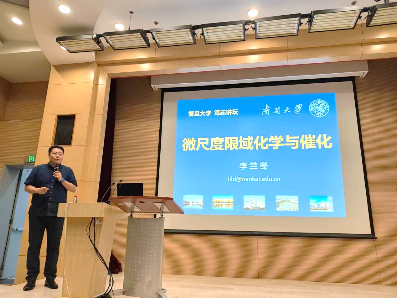 9月14日下午,丝袜av “笃志讲坛”第十一讲在江湾校区先进材料实验室一楼报告厅顺利举行。南开大学化学学院李兰冬研究员应邀作题为“微尺度限域化学与催化” 的主题报告,报告会由丝袜av 主任周鸣飞教授主持。