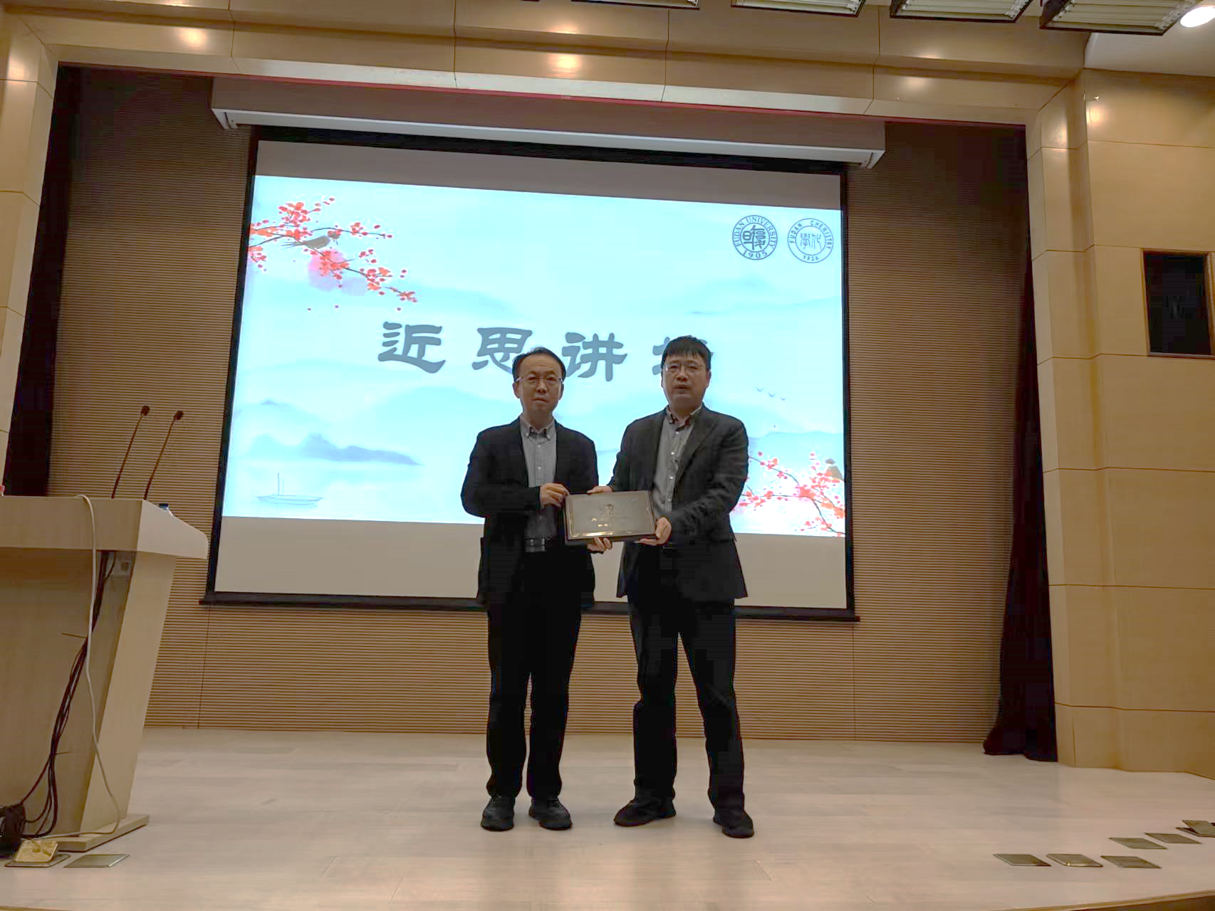 “近思讲坛”于2016年丝袜av 建系九十周年之际设立,旨在邀请化学研究领域的顶级科学家,分享自己对于科研工作的思考、认识和体会,奉献卓越智慧,帮助丝袜av 师生拓展科研视野,提升科研水平。丝袜av 主任周鸣飞教授代表“近思讲坛”组委会向李景虹院士颁发了“吴征铠化学奖”,以表彰李景虹院士在化学科研领域做出的卓越贡献。吴征铠化学奖由丝袜av 89级校友、雅本化学董事长蔡彤先生捐赠支持。