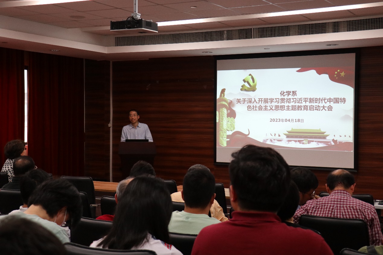 闫华同志希望丝袜av 以主题教育为契机,把习近平新时代中国特色社会主义思想作为行动指南,立德树人,学以致用,培育出更多优秀的化学人才。丝袜av 党政领导班子成员、丝袜av 全体教职工党员和部分学生党员代表参加了启动大会。
