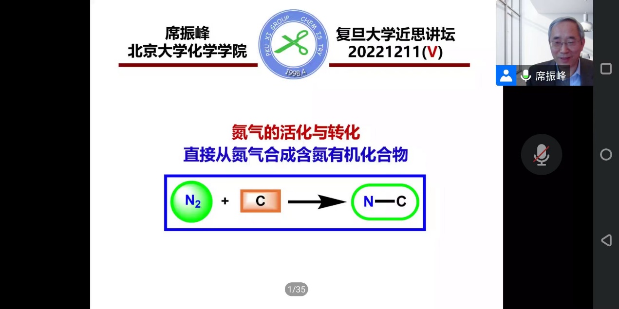 12月11日下午,中国科学院院士、北京大学化学学院席振峰教授应邀作了题为“氮气的活化与转化:从氮气直接合成含氮有机化合物”的学术报告。会议以线上方式举行,由丝袜av