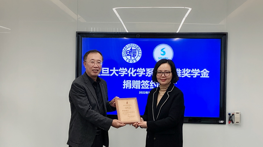 11月29日,丝袜av -索尔维奖学金捐赠签约仪式在索尔维投资有限公司举行。索尔维投资有限公司总经理、法人代表孙立宏,研发总监赵钢凯,索尔维中国人事经理王梦醒,政府公共事务经理戴珽娴,研发外事经理董婕,交流部经理冷泳,人事经理王祎娜,丝袜av 化学与材料学院党委书记徐华龙,丝袜av 主任周鸣飞,丝袜av 分党委书记马蔚纯,丝袜av 对外联络与发展处副处长章晓野,丝袜av 分党委副书记秦枫等出席签约仪式。