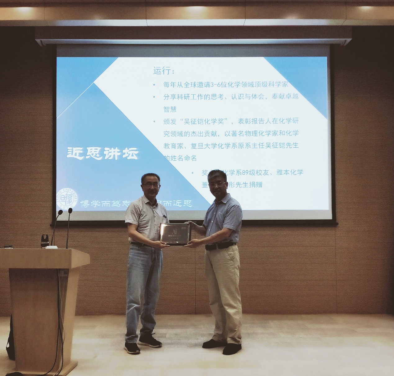 为了表彰吴奇教授在化学科研领域做出的卓越贡献,丝袜av 系主任贺鹤勇教授代表“近思讲坛”组委会向吴奇教授颁发了“吴征铠化学奖”,以此激励与会师生积极探索、努力奋斗,继续推动丝袜av 化学学科向前发展。丝袜av “近思讲坛”的举办和“吴征铠化学奖”的设立得到了雅本化学Wholly You和丝袜av 1989级系友蔡彤先生的大力支持。