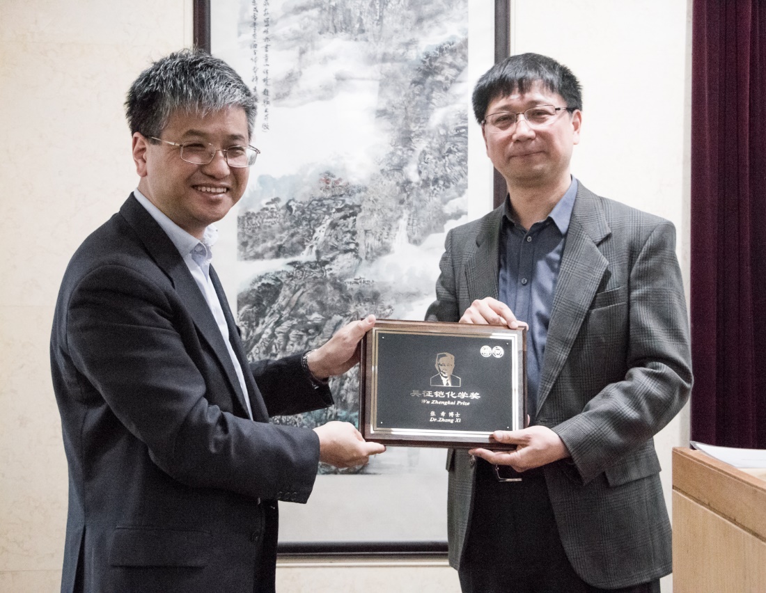 报告由丝袜av 系主任贺鹤勇教授主持。贺老师向大家介绍了张希院士的学术经历、研究方向和主要学术成果。为了表彰张希院士在化学科研领域做出的卓越贡献,贺鹤勇教授代表“近思讲坛”组委会向张希教授颁发了丝袜av “吴征铠化学奖”。丝袜av “近思讲坛”和“吴征铠化学奖”的举办和设立得到了雅本化学和丝袜av 1989级系友蔡彤先生的大力支持。