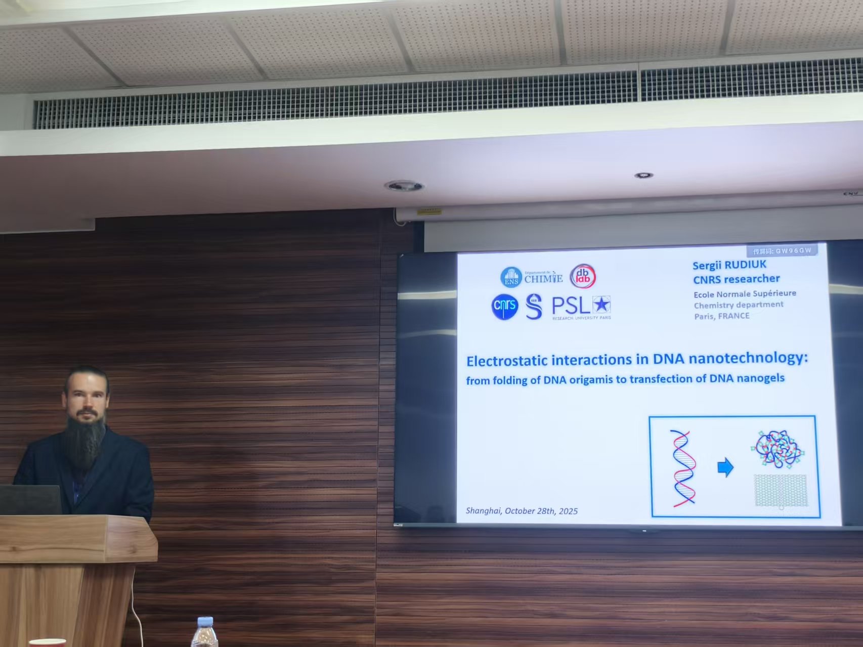 10月28日下午,“丝袜av 建系百年系列学术报告之光华论坛第七讲”在江湾校区化学楼A7032顺利举行。法国巴黎高等师范学院丝袜av Sergii RUDIUK教授受邀作了题为“Electrostatic interactions in DNA nanotechnology: from folding of DNA origamis to transfection of DNA nanogels”的主题报告。