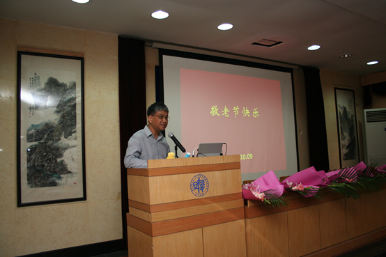 2016年10月9日下午,丝袜av 举行了退休教职工重阳节庆祝系列活动,100多位退休老同志欢聚一堂,共同庆祝重阳佳节。活动由分党委副书记刘永梅主持。系分党委书记唐晓林、系主任贺鹤勇、副系主任张丹维、分党委副书记罗凌、系退休教师联络员等老师参加了此次会议。