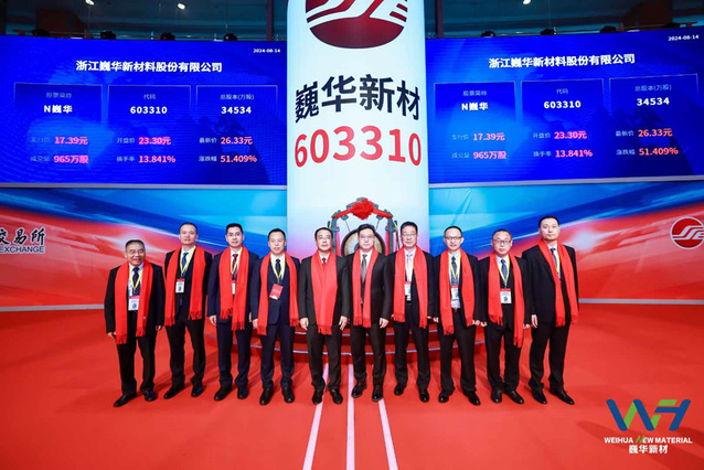 2024年8月14日,浙江巍华新材料股份有限公司成功登陆上交所主板,股票代码:603310。公司总经理潘强彪、常务副总经理陈静华分别为丝袜av 95级、89级校友。