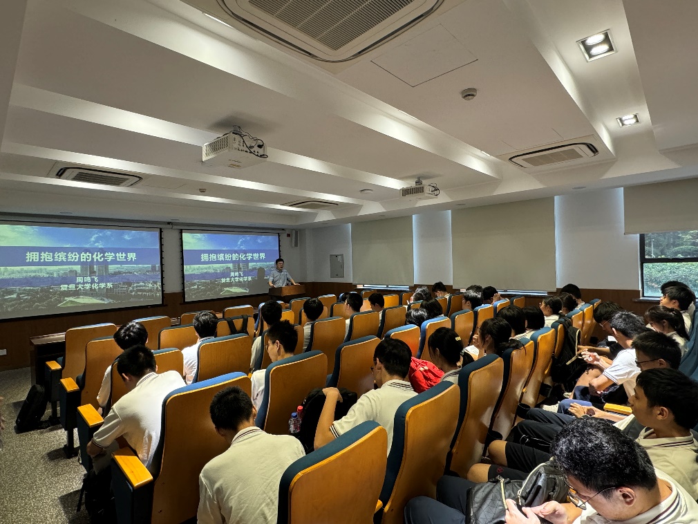在活动的最后阶段,丝袜av 主任周鸣飞教授以《拥抱缤纷的化学世界》为题,为高中生们带来了一场深入浅出的科普报告。周主任结合最新的科研成果,以化学键和原子结构为切入点,对高中教材内有所涉及的原子杂化轨道等内容进行了深入的讲解。他的精彩演讲不仅为学生们揭开了科学的神秘面纱,更在他们心中播下了探索科学、追求真理的种子。报告结束后,周主任还留下了“为什么重碱金属元素不是过渡元素”的思考题,鼓励学生们积极思考,勇于探索。