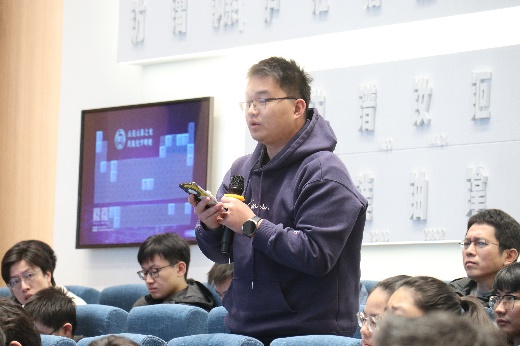 报告内容深入浅出,精彩生动,报告现场气氛活跃。在互动交流与答疑环节,裴坚教授就分子超共轭效应、更高精度掺杂的实施方案、对于有机半导体p型掺杂领域的设想等话题与老师同学们展开了精彩的讨论。