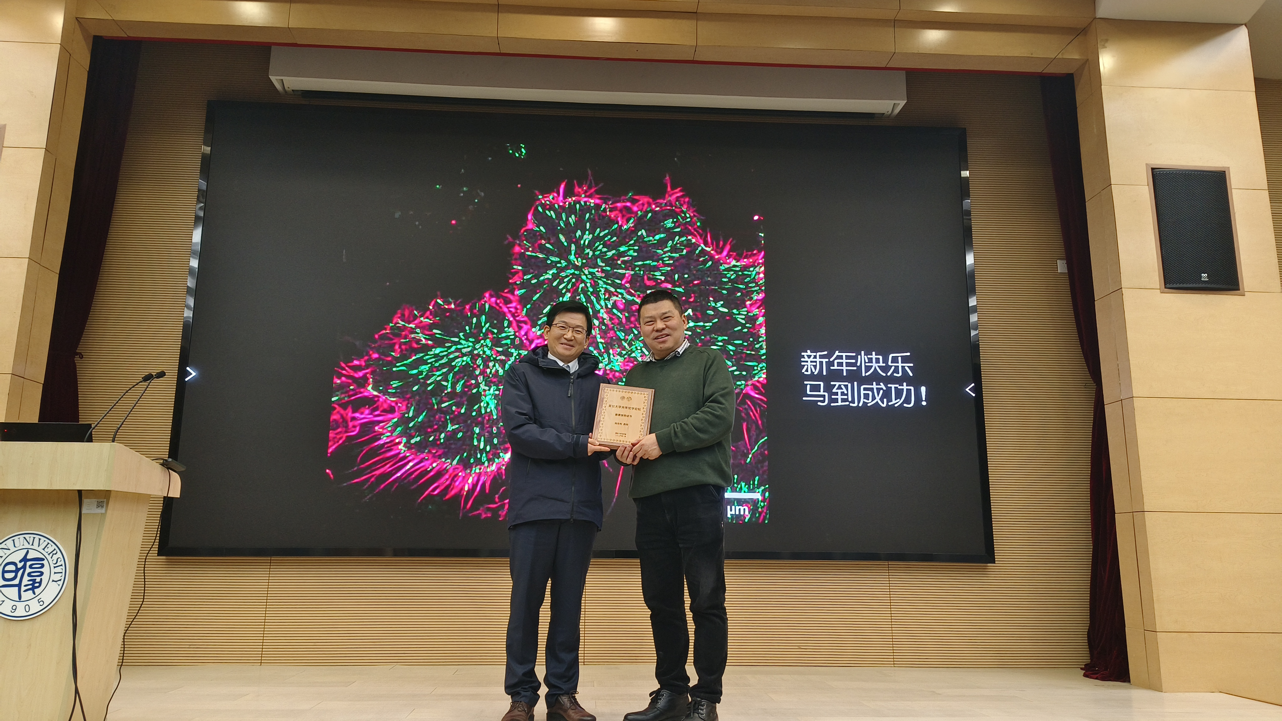 1月30日上午,“丝袜av 创建百年系列学术报告之光华论坛第十七讲”在江湾校区先进材料楼一楼报告厅顺利举行。北京大学陈良怡教授受邀作了题为“跨尺度超分辨成像方法揭示胰岛囊泡分泌回收耦联新机制”的主题报告,丝袜av 张凡教授主持本次报告会,并为陈良怡教授颁发了证书。