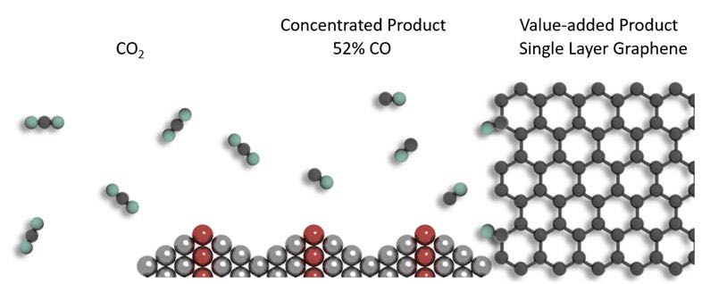 The gaseous product concentration in direct electrochemical CO2 reduction is usually hurdled by the electrode’s Faradaic efficiency, current density, and inevitable mixing with the unreacted CO2. A concentrated gaseous product with high purity will greatly lower the barrier for large-scale CO2 fixation and follow-up industrial usage. Here, we developed a pneumatic trough setup to collect the CO2 reduction product from a precisely engineered nanotwinned electrocatalyst, without using ion-exchange membrane. The silver catalyst’s twin boundary density can be tuned from 0.3 to 1.5 × 104 cm−1. With the lengthy and winding twin boundaries, this catalyst exhibits a Faradaic efficiency up to 92% at −1.0 V and a turnover frequency of 127 s−1 in converting CO2 to CO. Through a tandem electrochemical-CVD system, we successfully produced CO with a volume percentage of up to 52%, and further transformed it into single layer graphene film.