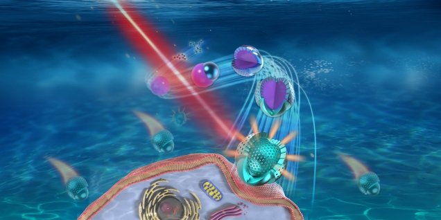 The rational design and controllable synthesis of hollow nanoparticles with both a mesoporous shell and an asymmetric architecture are crucially desired yet still significant challenges. In this work, a kinetics-controlled interfacial super-assembly strategy is developed, which is capable of preparing asymmetric porous and hollow carbon (APHC) nanoparticles through the precise regulation of polymerization and assembly rates of two kinds of precursors. In this method, Janus resin and silica hybrid (RSH) nanoparticles are first fabricated through the kinetics-controlled competitive nucleation and assembly of two precursors. Specifically, silica nanoparticles are initially formed, and the resin nanoparticles are subsequently formed on one side of the silica nanoparticles, followed by the co-assembly of silica and resin on the other side of the silica nanoparticles. The APHC nanoparticles are finally obtained via high-temperature carbonization of RSH nanoparticles and elimination of silica. The erratic asymmetrical, hierarchical porous and hollow structure and excellent photothermal performance under 980 nm near-infrared (NIR) light endow the APHC nanoparticles with the ability to serve as fuel-free nanomotors with NIR-light-driven propulsion. Upon illumination by NIR light, the photothermal effect of the APHC shell causes both self-thermophoresis and jet driving forces, which propel the APHC nanomotor. Furthermore, with the assistance of phase change materials, such APHC nanoparticles can be employed as smart vehicles that can achieve on-demand release of drugs with a 980 nm NIR laser. As a proof of concept, we apply this APHC-based therapeutic system in cancer treatment, which shows improved anticancer performance due to the synergy of photothermal therapy and chemotherapy. In brief, this kinetics-controlled approach may put forward new insight into the design and synthesis of functional materials with unique structures, properties, and applications by adjusting the assembly rates of multiple precursors in a reaction system.