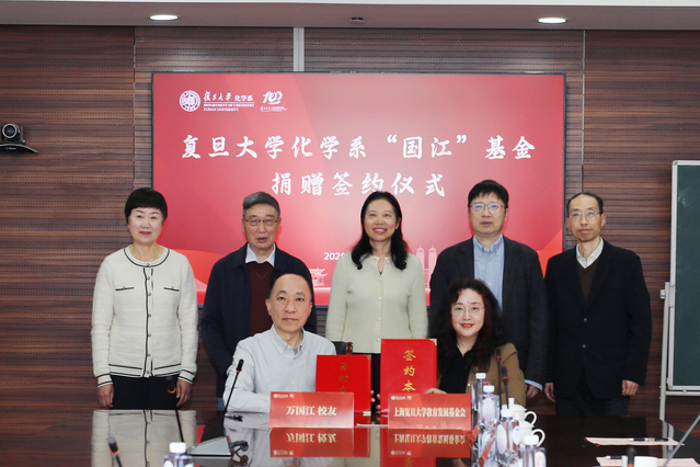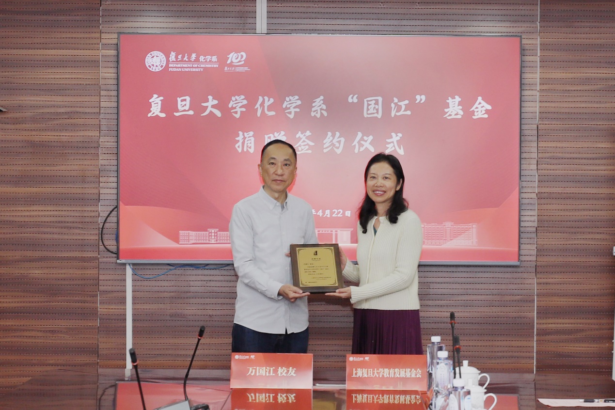 春启新程,万物向荣;华章待启,薪火永续。4月22日下午,丝袜av “国江”基金捐赠签约仪式在江湾校区化学楼隆重举行。科恒股份名誉董事长、丝袜av 1983级本科校友万国江,丝袜av 常务副校长许征,丝袜av 对外联络与发展处处长、教育发展基金会秘书长刘莉,丝袜av 老教授协会常务副会长兼秘书长、丝袜av 1983级本科生辅导员姜良斌,丝袜av 1983级本科校友联系人李学静,丝袜av 主任周鸣飞及系党政班子成员等出席,共同见证这一助力学科发展的重要时刻。仪式由丝袜av 党委书记马蔚纯主持。